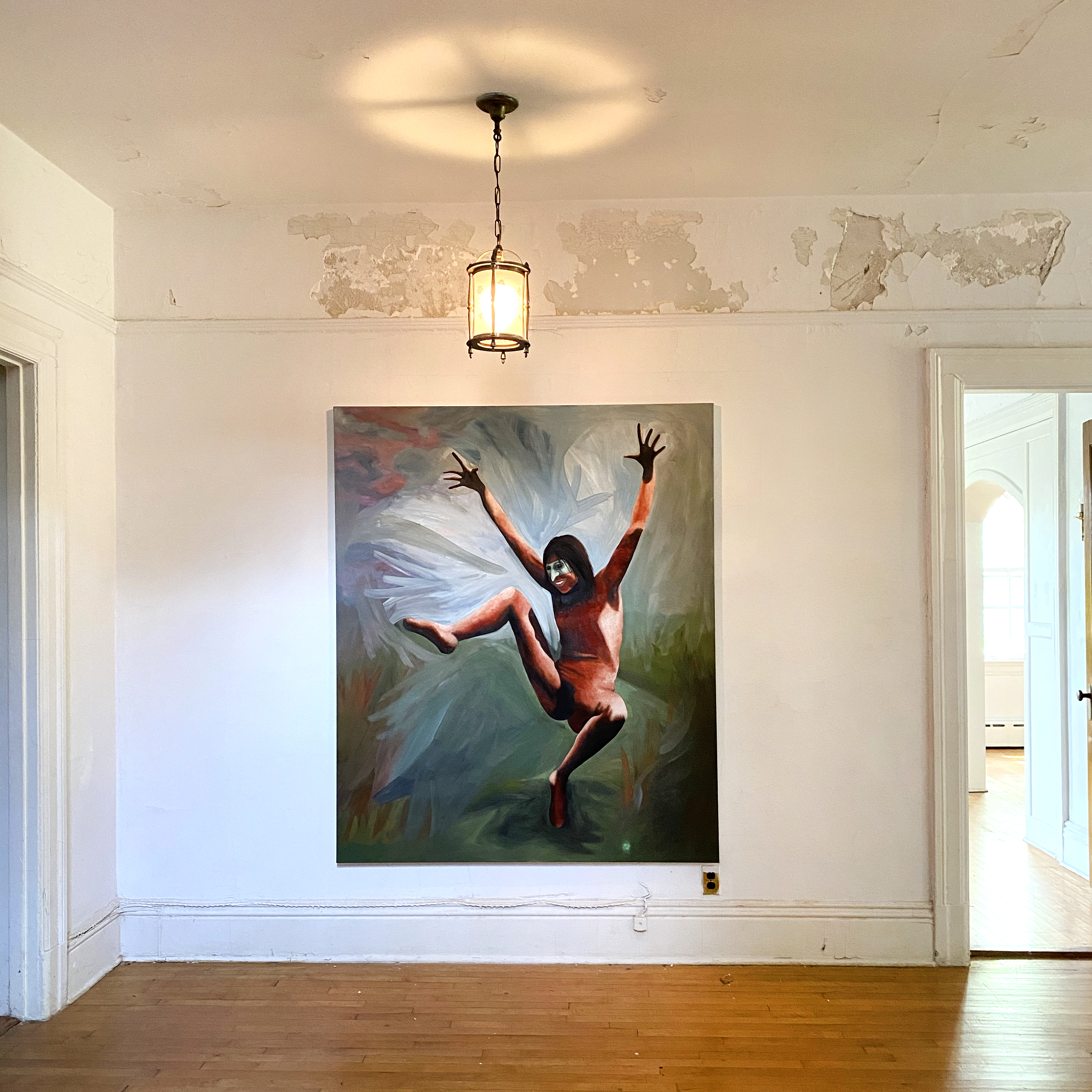 Zoe Fisher Projects is thrilled to present a site specific installation of work by Hudson-based artist Caitlin MacBride at NADA x Foreland, a collaborative weekend exhibition in Catskill opening to the public next Saturday August 28th. Organized with Jesse Greenberg of JAG Projects in partnership with Upstate Art Weekend, NADA x Foreland will present artworks from over 100 artists, presented by 81 exhibitors from New Art Dealers Alliance’s community of galleries, non-profits, and artist-run spaces. Hung by an antique rope and pulley from the exposed beams of Foreland’s former textile mill building, MacBride’s newest large-scale oil painting will continue her longstanding interest in the history of American craft and design.